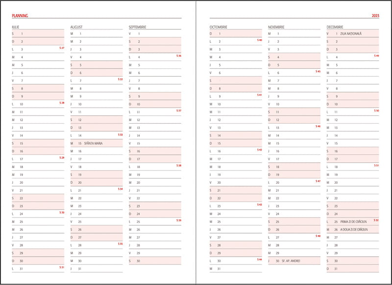 Agenda zilnica A5 (14×20.5cm) cu 360 de pagini (352 si 8 atlas). Hartie offset, alba, 70g/mp. Imprimare: forzat alb, 2 culori (rosu, gri). Atlas 8 pagini policromie. Finisare: cusuta, legata. Coperti buretate, semn de carte rosu, banda capital rosie. Acest produs este comercializat de NVP Birotica, si poate fi comandat oriunde in Romania, cu taxa curier 20 lei (pentru plata cu cardul, sau 29 lei plata ramburs), cu transport gratuit pentru comenzi peste 150 lei.