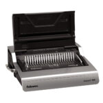 Aparat de indosariat electric cu inele din plastic. Platforma de indosariere demontabila – 2 utilizatori pot sa perforeze si sa indosarieze simultan. Ajustare a marginii posterioare pentru diferite marimi de pagini. Selectie a capacitatii de perforare pentru documentele A4 si A5. Tava de depozitare pentru consumabile, cu sistem patentat de masurare a inelelor si a documentelor. Ghid ajustabil pentru margine. Kit de baza inclus pentru 20 documente. Capacitate de perforare: 28 coli. Capacitate de indosariere: 500 coli. Diametru maxim spirala: 50 mm. Greutate: 13 kg. Dimensiuni: 152 x 490 x 446 mm. Acest produs este comercializat de NVP Birotica, si poate fi comandat oriunde in Romania, cu taxa curier 20 lei (pentru plata cu cardul, sau 29 lei plata ramburs), cu transport gratuit pentru comenzi peste 150 lei.