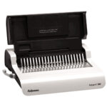 Aparat de indosariat electric cu inele din plastic. Tava de depozitare pentru consumabile, cu sistem patentat de masurare a inelelor si a documentelor. Kit de baza inclus pentru 10 documente. Capacitate de perforare: 20 coli. Capacitate de indosariere: 300 coli. Diametru maxim spirala: 38 mm. Greutate: 9,5 kg. Dimensiuni: 130 x 432 x 388 mm. Acest produs este comercializat de NVP Birotica, si poate fi comandat oriunde in Romania, cu taxa curier 20 lei (pentru plata cu cardul, sau 29 lei plata ramburs), cu transport gratuit pentru comenzi peste 150 lei.