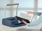 Sistem compact, usor de utilizat, este ideal pentru legarea prezentarilor si a documentelor de dimensiuni mai mari. Cea mai rapida si usoara solutie pentru legare, cu rezultate absolut perfecte. Foarte simplu de folosit, doar introduceti documentul intre coperti si apasati pe maner pentru o legare rapida. Nu necesita perforare sau lipici aditional. Necesita 3 – 4 apasari. Masoara grosimea documentului si arata dimensiunea copertii ideale (3,5 – 28 mm). O singura masina pentru toate tipurile de coperti. Capacitate de legare: 280 coli. Acest produs este comercializat de NVP Birotica, si poate fi comandat oriunde in Romania, cu taxa curier 20 lei (pentru plata cu cardul, sau 29 lei plata ramburs), cu transport gratuit pentru comenzi peste 150 lei.