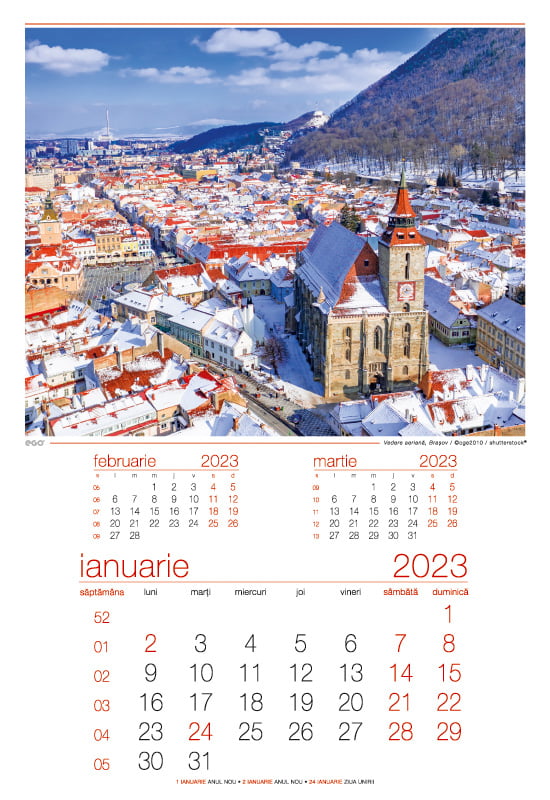Format 33x48cm cu 13 file (12 file, coperta). Hartie dublu cretata mat, 170g/mp. Imprimare: policromie. Finisare: spira metalica, alba. Acest produs este comercializat de NVP Birotica, si poate fi comandat oriunde in Romania, cu taxa curier 20 lei (pentru plata cu cardul, sau 29 lei plata ramburs), cu transport gratuit pentru comenzi peste 150 lei.