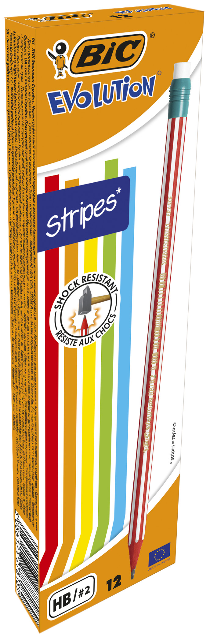 Creion Grafit Hb Cu Guma Evolution Stripes 646 12/Cut Bic