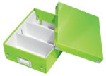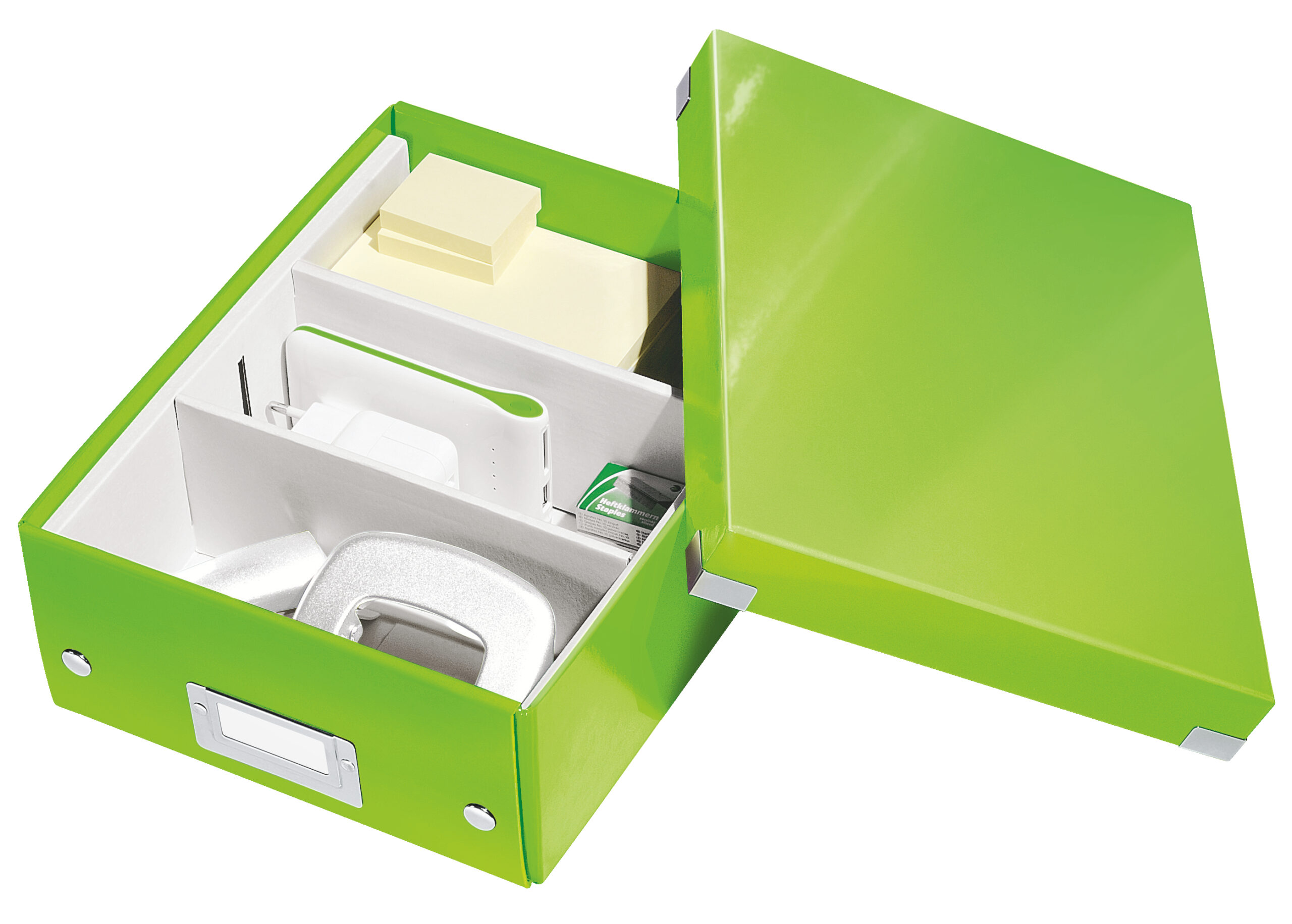 Cutie Leitz Click & Store Organizer mica. cu 2-3 compartimente flexibile. Este pliabila, pentru a salva spatiu atunci cand nu o folosesti. Este confectionata din carton de calitate premium, cu o suprafata laminata pentru un nivel de rezistenta crescut. Design-ul modern si contemporan o sa arate perfect la tine acasa sau in birou. Acest produs este comercializat de NVP Birotica, si poate fi comandat oriunde in Romania, cu taxa curier 20 lei (pentru plata cu cardul, sau 29 lei plata ramburs), cu transport gratuit pentru comenzi peste 150 lei.