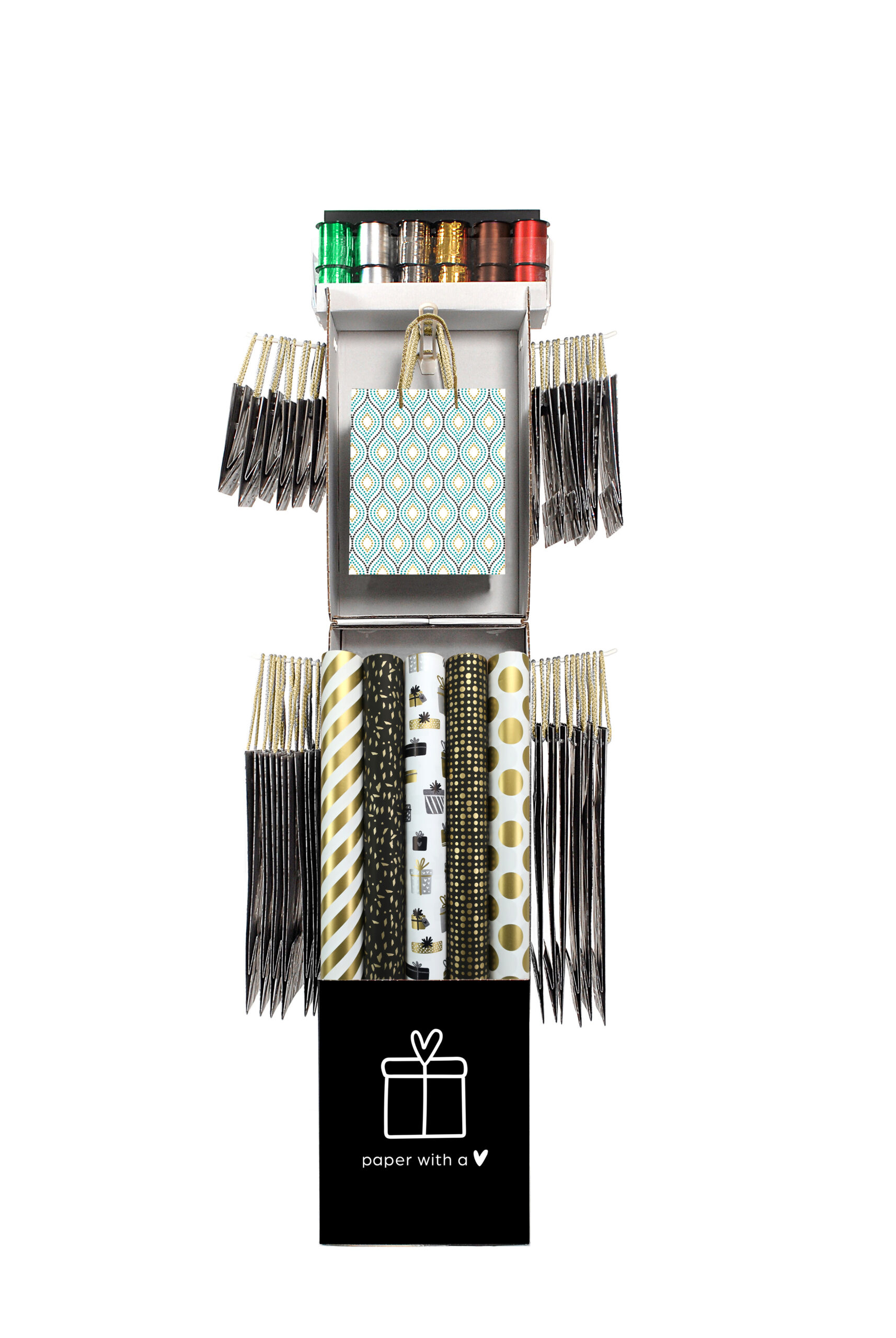 Display cu role si pungi cadou. Design atractiv, modele asortate. Acest produs este comercializat de NVP Birotica, si poate fi comandat oriunde in Romania, cu taxa curier 20 lei (pentru plata cu cardul, sau 29 lei plata ramburs), cu transport gratuit pentru comenzi peste 150 lei.