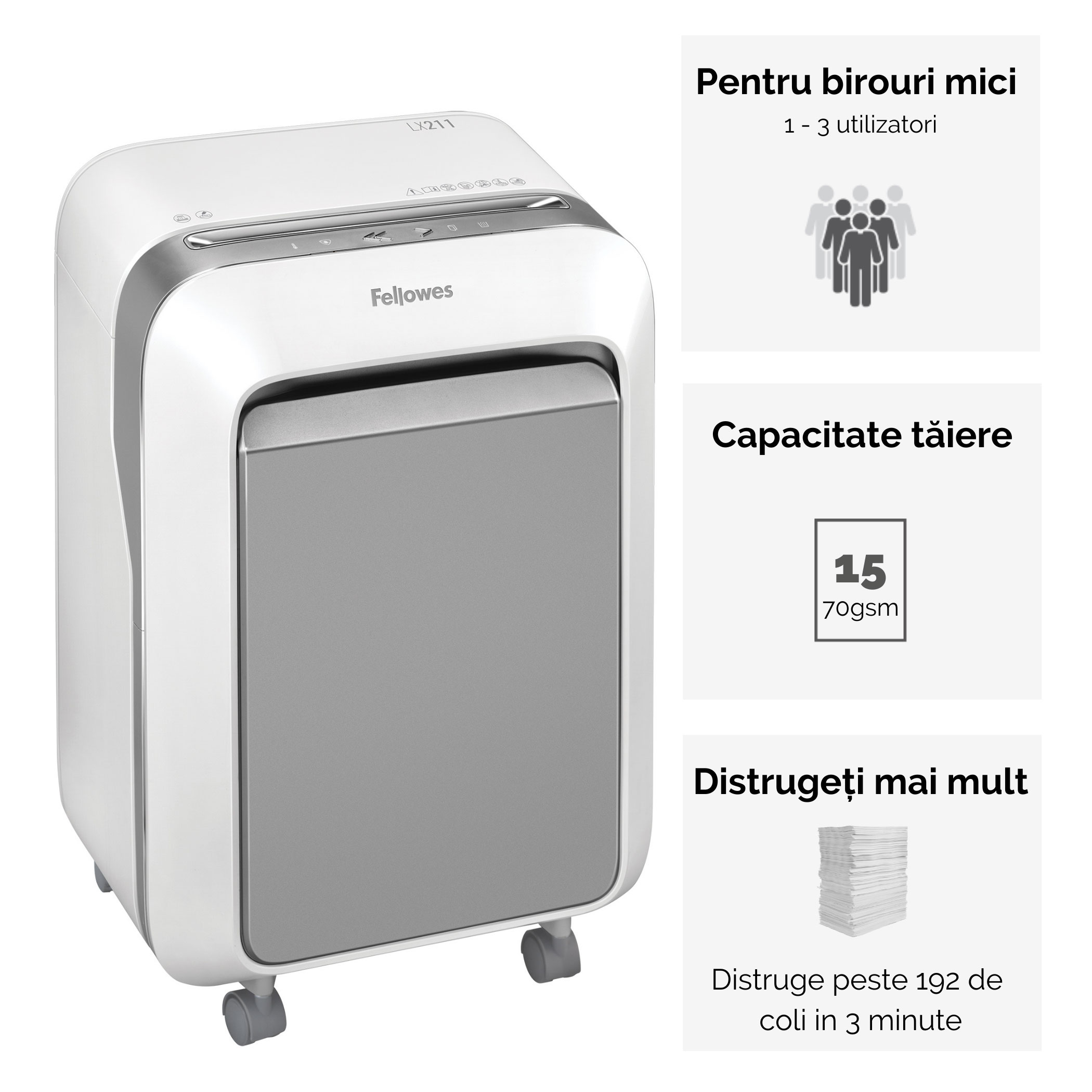 Fii primul care scrii o recenzie pentru „Distrugator Documente Lx211 Micro-Cut Alb Fellowes”