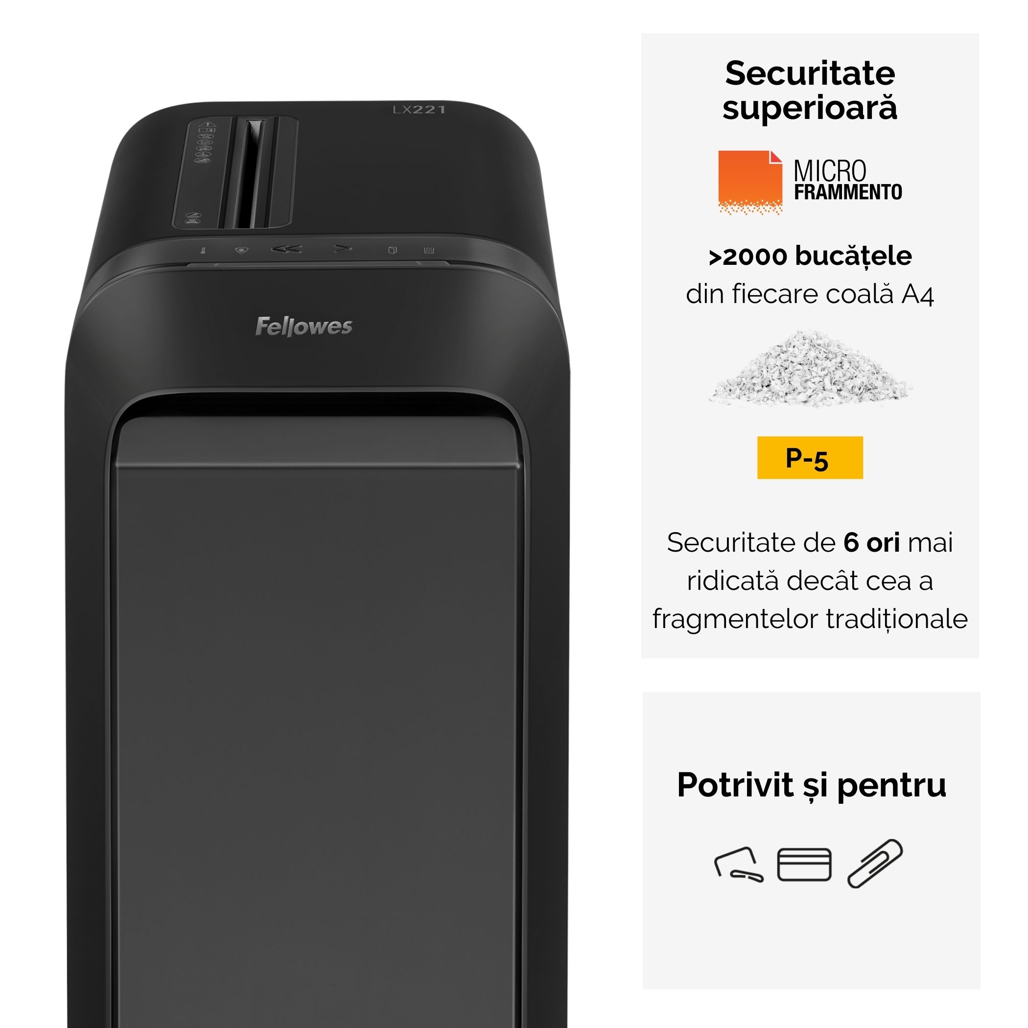 Distrugator Documente Lx221 Micro-Cut Negru Fellowes