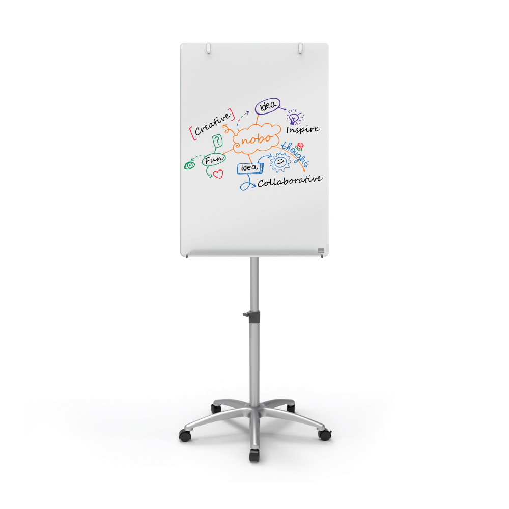 Stilat si de 3 ori mai usor de curatat! Flipchartul mobil Nobo are o suprafata din sticla securizata magnetica (tempered glass) care este potrivita pentru uzul frecvent datorita stergerii ultra usoare si rezistenta foarte mare la petele de creneala, markere, zgarieturi si lovituri. Designul fara rama, tavita pentru instrumentele de scris este din aluminiu de calitate inalta. Inaltimea bazei este ajustabila, iar rotile se pot bloca. Dotat cu carlige pentru hartie, marker Nobo si magneti extra puternici. Garantie pe viata. Acest produs este comercializat de NVP Birotica, si poate fi comandat oriunde in Romania, cu taxa curier 20 lei (pentru plata cu cardul, sau 29 lei plata ramburs), cu transport gratuit pentru comenzi peste 150 lei.