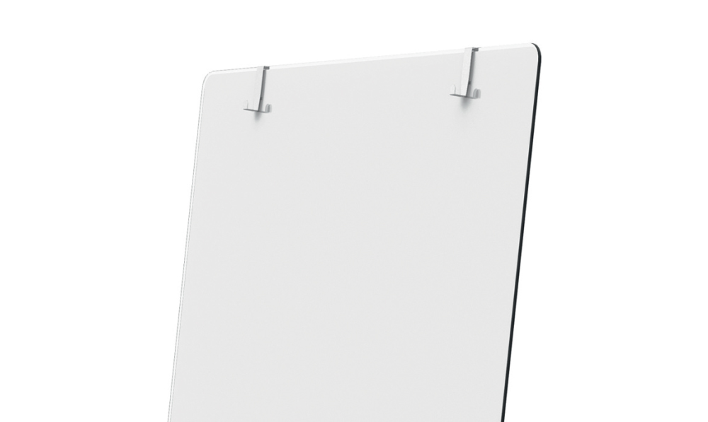 Furnizat cu carlige ajustabile pentru sustinerea hartiei, tavita pentru instrumente de scris, marker Nobo si set de magneti ultra-puternici.