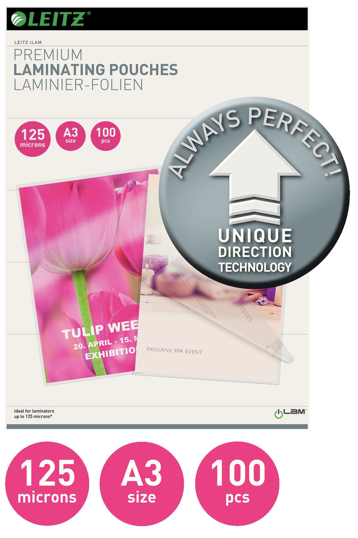 Laminare usoara, fara probleme sau blocaje, cu tehnologia UDT. Folii de calitate premium ce protejeaza documentele impotriva murdariei, lichidelor si umezelii. Caracteristici Usor de folosit, cu UDT (Unique Direction Technology) – un sistem unic cu sageti ce indica directia corecta de introducere a foliei de laminator si dispar dupa laminare. Instructiuni de utilizare usor de urmat, pentru o laminare perfecta, fara blocaje. Finisaj lucios pentru intensificarea culorilor. Protectie de durata a documentelor impotriva murdariei, lichidelor si umezelii, rigiditate standard. Potrivite pentru toate laminatoarele. Acest produs este comercializat de NVP Birotica, si poate fi comandat oriunde in Romania, cu taxa curier 20 lei (pentru plata cu cardul, sau 29 lei plata ramburs), cu transport gratuit pentru comenzi peste 150 lei.