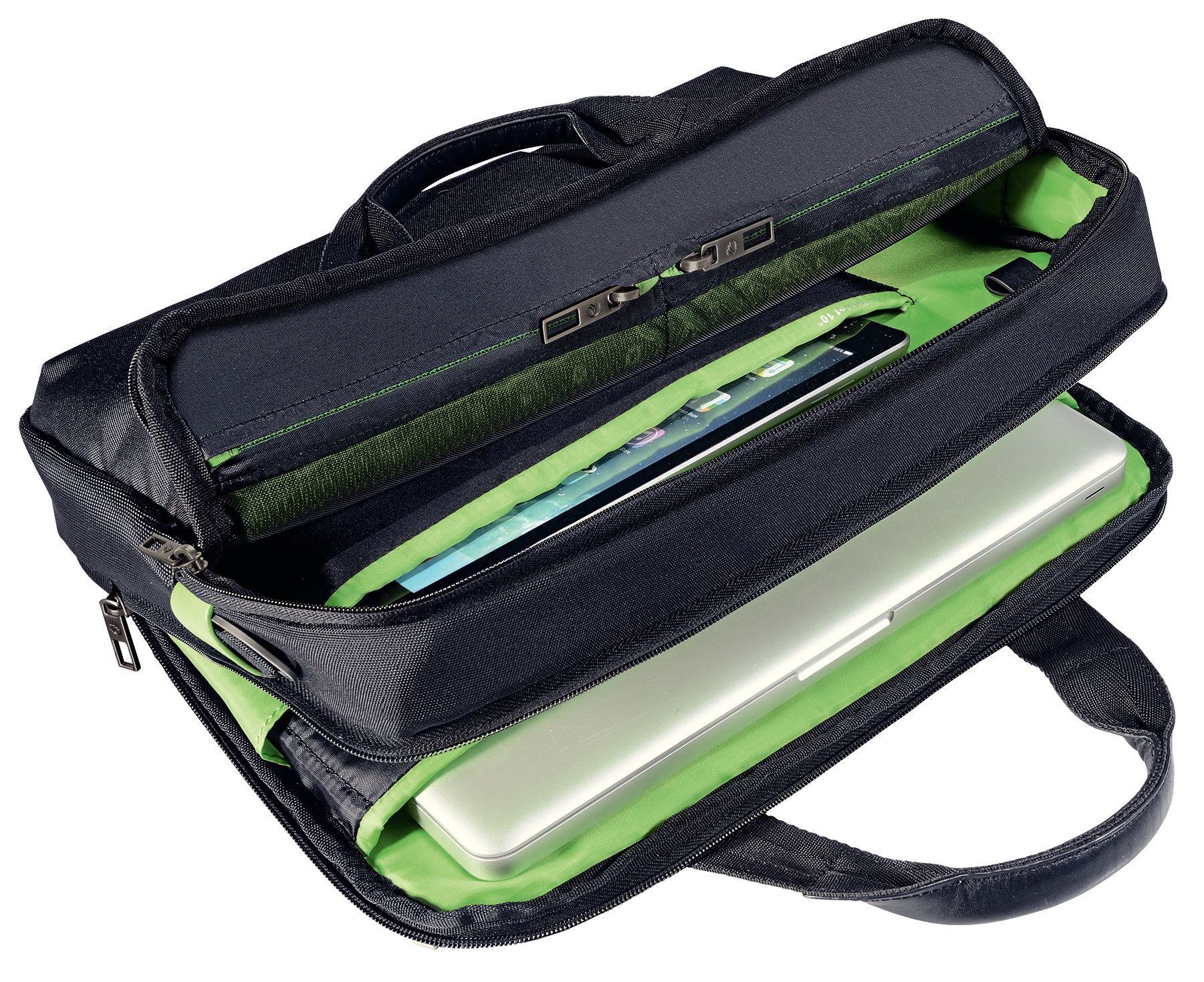 Geanta business fabricata din materiale de calitate premium, usoara si compacta, prevazuta cu doua compartimente principale si un buzunar frontal mai mic. Design unic si elegant, cu fermoar metalic rezistent si catarame din metal mat. Dotata cu manere scurte captusite cu piele naturala, curea de umar ajustabila si sistem de fixare pe troler. Poliester usor si robust, pentru confortul zilnic. Compartimentul frontal permite accesul rapid la telefon, pasaport, instrument de scris, carti de vizita etc. 18 buzunare, inclusiv buzunarul frontal pentru acces rapid la mini-tableta sau eBook reader. Alte dotari utile, inclusiv carpa pentru ecran si suport de chei. Husa detasabila separata, pentru cablul de alimentare si adaptorul de priza. Buzunar interior din plasa, pentru incarcatoare, cabluri si alte accesorii. Buzunare principale cu captuseala moale, pentru protectia ecranului tabletei si a laptopului. Buzunar secret pe spate, pentru acces rapid la smartphone. Utilizare pentru: Laptop 13.3″, Tableta PC 10”, eBook reader, smartphone-uri, documente si dosare A4. Dimensiuni: 380 x 280 x 100 mm. Culoare: negru. Acest produs este comercializat de NVP Birotica, si poate fi comandat oriunde in Romania, cu taxa curier 20 lei (pentru plata cu cardul, sau 29 lei plata ramburs), cu transport gratuit pentru comenzi peste 150 lei.