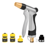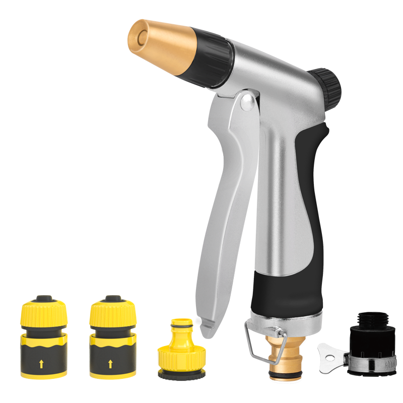 Aplicatii largi, cum ar fi spalarea masinii si irigarea gradinii. Pistol metalic galvanizat cu cap de pulverizare anti-rugina. Inelul de etansare din interior previne scurgerile. Cap de pulverizare acoperit cu plastic. Maner din cauciuc confortabil. Presiunea ridicata a apei permite pulverizarea de 6-8 m autonomie atunci cand este conectat la alimentarea cu apa menajera. Iesirea apei poate fi reglata. Manerul comutatorului cu fixare economiseste efortul. Acest produs este comercializat de NVP Birotica, si poate fi comandat oriunde in Romania, cu taxa curier 20 lei (pentru plata cu cardul, sau 29 lei plata ramburs), cu transport gratuit pentru comenzi peste 150 lei.