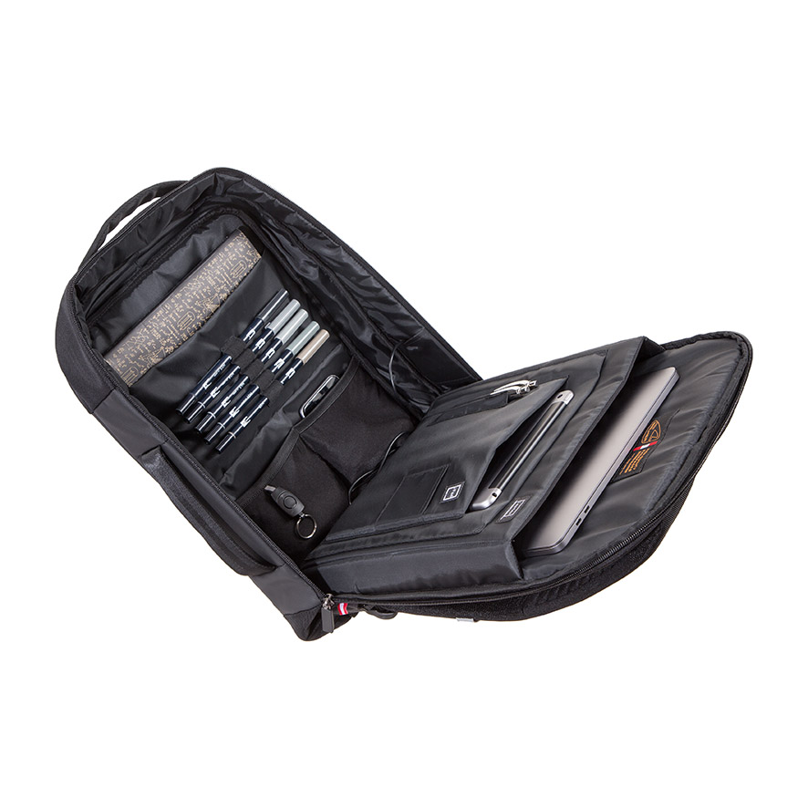 Designul futurist, functionalitate si caracteristici inovatoare. Deschiderea cu fermoar 180grade ofera purtatorului sau o vedere optima in interior si o manevrare usoara. In plus, are bretele in forma ergonomica si captuseala din spate respirabila, pentru un confort excelent. Material superior, de inalta calitate, format din poliester 600D pana la 1200D. Este dur, foarte robust si se caracterizeaza printr-o densitate de tesatura extraordinar de mare si o rezistenta puternica la abraziune. Rezistent la apa si murdarie Compartiment principal captusit pentru laptop si compartiment pentru tablete (max. 15inch) Compartiment principal mare cu buzunar pentru baterie (bateria nu este inclusa) 1 buzunar cu fermoar pentru piese mici, buzunar pentru carti de vizita, sloturi pentru pixuri si carabiniera detasabila Buzunare laterale cu fermoar, cu buzunare cu plasa suplimentara pentru sticla de bauturi si depozitare cabluri Maner Elemente de design reflectorizante Acoperire spate respirabila Curele de umar in forma ergonomica si respirabile Curea reglabila pentru piept Buzunar frontal mic, cu protectie RFID care blocheaza semnalele wireless pentru a impiedica furtul de date Port USB de incarcare Curea carucior Deschidere completa la 180grade Dimensiune: 46x34x15cm. Volum: 24L. Acest produs este comercializat de NVP Birotica, si poate fi comandat oriunde in Romania, cu taxa curier 20 lei (pentru plata cu cardul, sau 29 lei plata ramburs), cu transport gratuit pentru comenzi peste 150 lei.