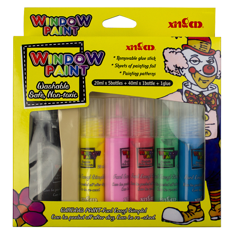 Set pentru pictura pe sticla. Setul contine: – lipici lichid 20 ml – un tub 40 ml culoarea neagra – 5 tuburi culori acuarele (20 ml/culoare) – lipici stick universal 8 gr, fara acid in componenta – carticica cu sabloane si 2 folii plastic pentru utilizare si transfer culori/proiecte – ustensila desigilare culoare Produs non-toxic. O data uscata vopseaua, rezultatul poate fi desprins de pe suprafata aplicata si repozitionat pe alta suprafata fina cu ajutorul lipiciului stick din set. Dimensiuni set (cu ambalaj carton): 18*20.3*3 cm (lungime*inaltime*grosime) Acest produs este comercializat de NVP Birotica, si poate fi comandat oriunde in Romania, cu taxa curier 20 lei (pentru plata cu cardul, sau 29 lei plata ramburs), cu transport gratuit pentru comenzi peste 150 lei.