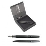 Set elegant, instrumente de scris metalice negre. Grosime scriere pix: 1 mm. Stilou cu penita din iridium, functioneaza cu patron standard Acest produs este comercializat de NVP Birotica, si poate fi comandat oriunde in Romania, cu taxa curier 20 lei (pentru plata cu cardul, sau 29 lei plata ramburs), cu transport gratuit pentru comenzi peste 150 lei.