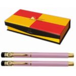 Corp metalic cu ornamente aurite.Stilou cu convertor, penita iridium placata cu aur de 22kPix cu mina tip ParkerCuloare: roz Acest produs este comercializat de NVP Birotica, si poate fi comandat oriunde in Romania, cu taxa curier 20 lei (pentru plata cu cardul, sau 29 lei plata ramburs), cu transport gratuit pentru comenzi peste 150 lei.