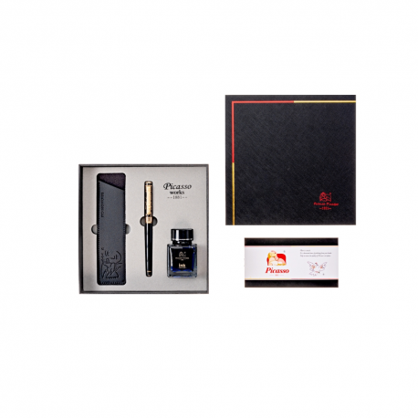 Set stilou + calimara + etui 9902 Picasso stilou metalic, ornamente aurite stilou cu convertor, penita tip F din iridium placata cu aur de 22K calimara albastra, etui pentru pastrare Acest produs este comercializat de NVP Birotica, si poate fi comandat oriunde in Romania, cu taxa curier 20 lei (pentru plata cu cardul, sau 29 lei plata ramburs), cu transport gratuit pentru comenzi peste 150 lei.