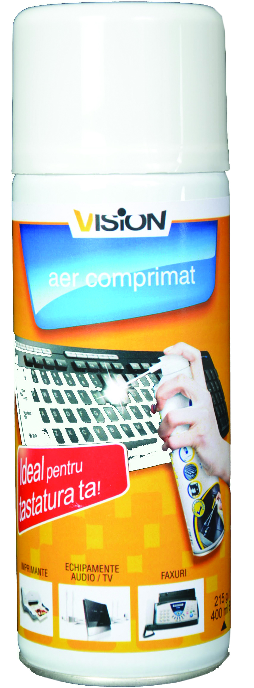 Aer comprimat sub presiune, pentru suflarea prafului si a altor impuritati din zone greu accesibile ale echipamentelor dvs. Ideal pentru: computere, tastaturi, imprimante, masini de numarat bani, faxuri, echipamente audio, televizoare si aparate foto. 400 ml. Acest produs este comercializat de NVP Birotica, si poate fi comandat oriunde in Romania, cu taxa curier 20 lei (pentru plata cu cardul, sau 29 lei plata ramburs), cu transport gratuit pentru comenzi peste 150 lei.
