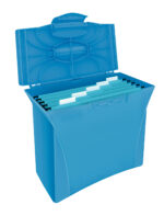 Se livreaza cu 5 dosare suspendabile Esselte A4. Inchidere cu capac, pentru siguranta documentelor. Maner ergonomic pentru un transport facil. Se pot suprapune in coloana pentru economisirea spatiului. Poate fi folosit si ca recipient de arhivare si depozitare pentru uz general, fara dosare suspendate. Capacitate: 15 dosare A4. Dimensiuni: 180 x 290 x 390 mm. Acest produs este comercializat de NVP Birotica, si poate fi comandat oriunde in Romania, cu taxa curier 20 lei (pentru plata cu cardul, sau 29 lei plata ramburs), cu transport gratuit pentru comenzi peste 150 lei.