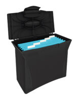 Se livreaza cu 5 dosare suspendabile Esselte A4. Inchidere cu capac, pentru siguranta documentelor. Maner ergonomic pentru un transport facil. Se pot suprapune in coloana pentru economisirea spatiului. Poate fi folosit si ca recipient de arhivare si depozitare pentru uz general, fara dosare suspendate. Capacitate: 15 dosare A4. Dimensiuni: 180 x 290 x 390 mm. Acest produs este comercializat de NVP Birotica, si poate fi comandat oriunde in Romania, cu taxa curier 20 lei (pentru plata cu cardul, sau 29 lei plata ramburs), cu transport gratuit pentru comenzi peste 150 lei.