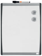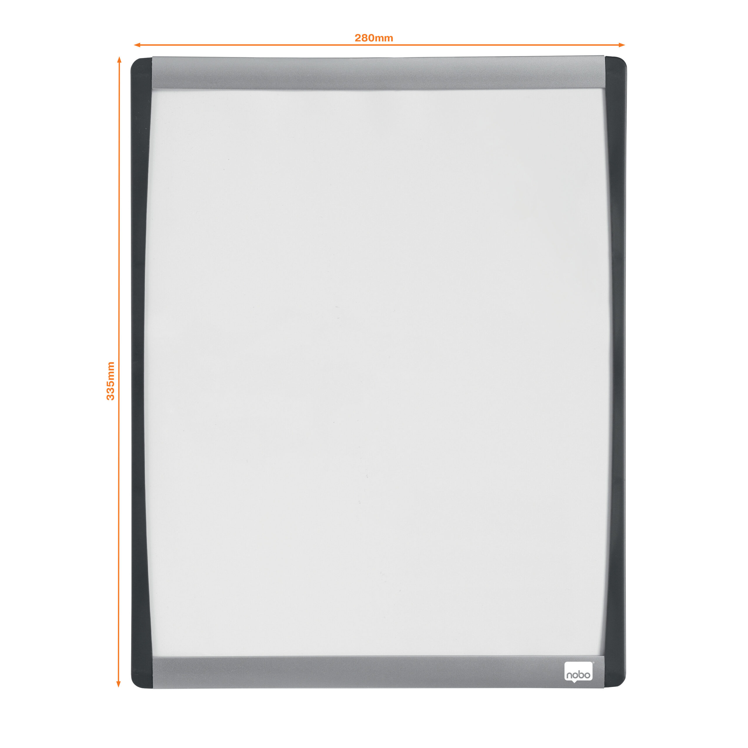 Aceasta tabla este solutia perfecta pentru notarea ideilor, mementourilor sau listelor. Cu rama eleganta, argintiu si negru, aceasta tabla se potriveste perfect in orice birou sau mediu. Montabila pe perete cu pad-uri adezive si magneti pentru suprafete metalice precum frigidere, tabla poate fi montata in format portret sau landscape. Include marker, burete pentru sters tabla si 2 magneti. Dimensiune 280x335mm. Acest produs este comercializat de NVP Birotica, si poate fi comandat oriunde in Romania, cu taxa curier 20 lei (pentru plata cu cardul, sau 29 lei plata ramburs), cu transport gratuit pentru comenzi peste 150 lei.